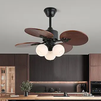 - Elegant Design: Features a durable metal body with five brown ABS blades disguised as palm leaf wooden crafted blades.