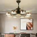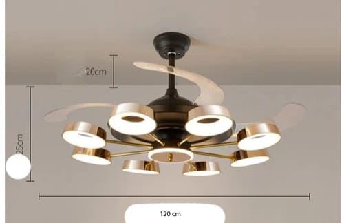 Elevate your living space with the Luxury Black Glass Ceiling Fan Chandelier. This stunning retractable fan lighting fixture features a sophisticated design with Frosted Balls accents, adding a touch of luxury to any room. With three adjustable color lights, it seamlessly adapts to your desired ambiance. Ideal for living rooms, bedrooms, dining areas, entrances, showrooms, and cafés, this versatile chandelier combines style and functionality. The retractable blades provide efficient air circulation when extended and a sleek, unobtrusive look when retracted. Enjoy a blend of elegance and practicality with this exquisite ceiling fan chandelier.