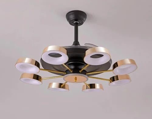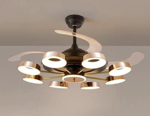 • Metal body with 8 Frosted glass light attached , Glass Bottom and ABS fan blades with copper binding motor chandelier fan